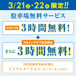 3時間無料券配布場所:インフォメーション(センターモール2F)