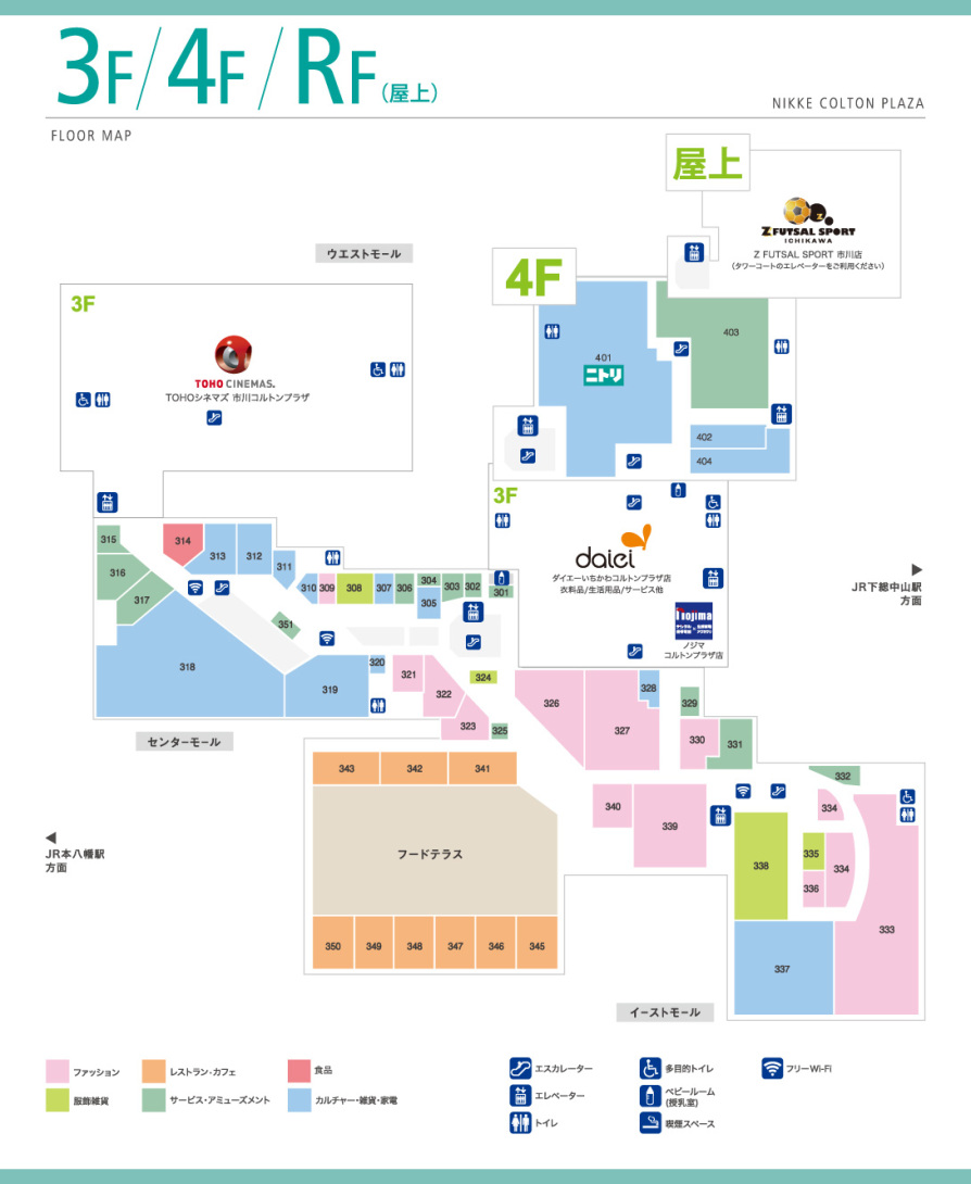 | 335 | ゾフ | 平日10:00~20:00、土日祝10:00~21:00 | 047-300-8414 | |