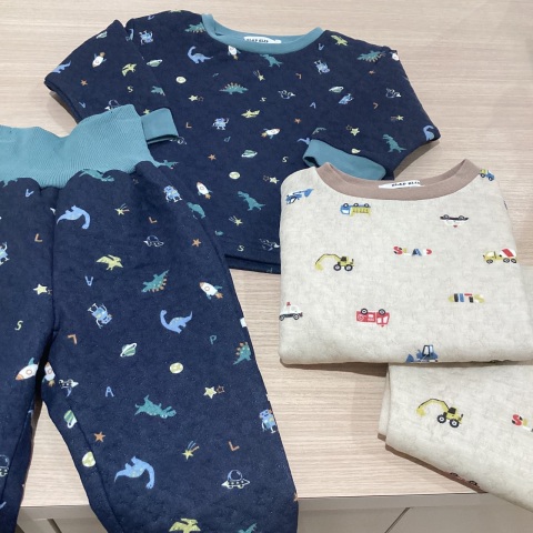 SLAP SLIPのスララクシリーズから、冬用のパジャマが入荷しました🤓 ニットキルト×綿100%素材! 腹巻き付きパンツで、たくさん動いてもお腹が冷えづらい! 80cm〜130cmまでご用意しております🎵 サイズが揃ってる今がチャンス✨
