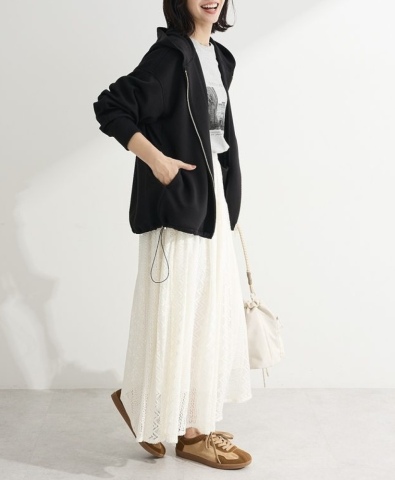 さっと羽織れて、表情を変えられる一枚💕 ダブルジップ仕様で着こなしの幅が広がるパーカー❤︎ 上下どちらからも開閉できるため、気温やコーディネートに合わせてバランス調整がしやすいのが魅力です⭐︎ 裾にはドローストリングを施し、絞ることで丸みのあるシルエットにもアレンジできます✨ 柔らかな肌触りの素材を使用しており、長時間着用しても心地よく過ごせます♪ 全体的にゆったりとしたシルエットなので、体のラインを拾いにくく、リラックス感のある着用感です! OTONAパーカーシリーズはセットアップでも着られるスカートもご用意しております☆