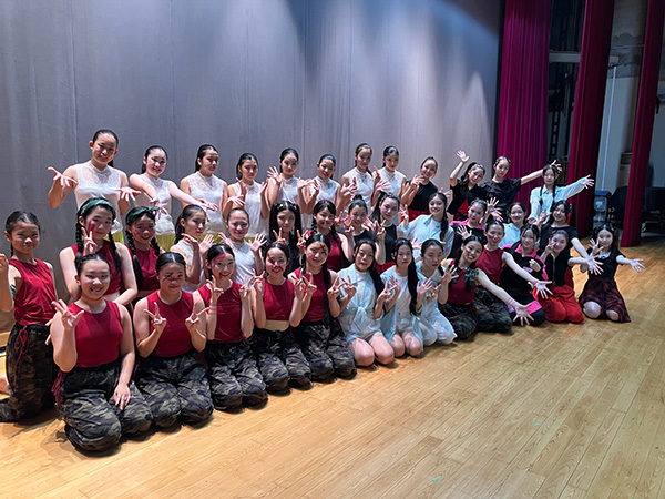 中高あわせて約40人が所属、イベントや学校行事ではジャズやチアダンス、オリジナルのダンスにチャレンジしています。一方、創作ダンスにも力を入れており、全国大会入賞を目指して日々活動しています。